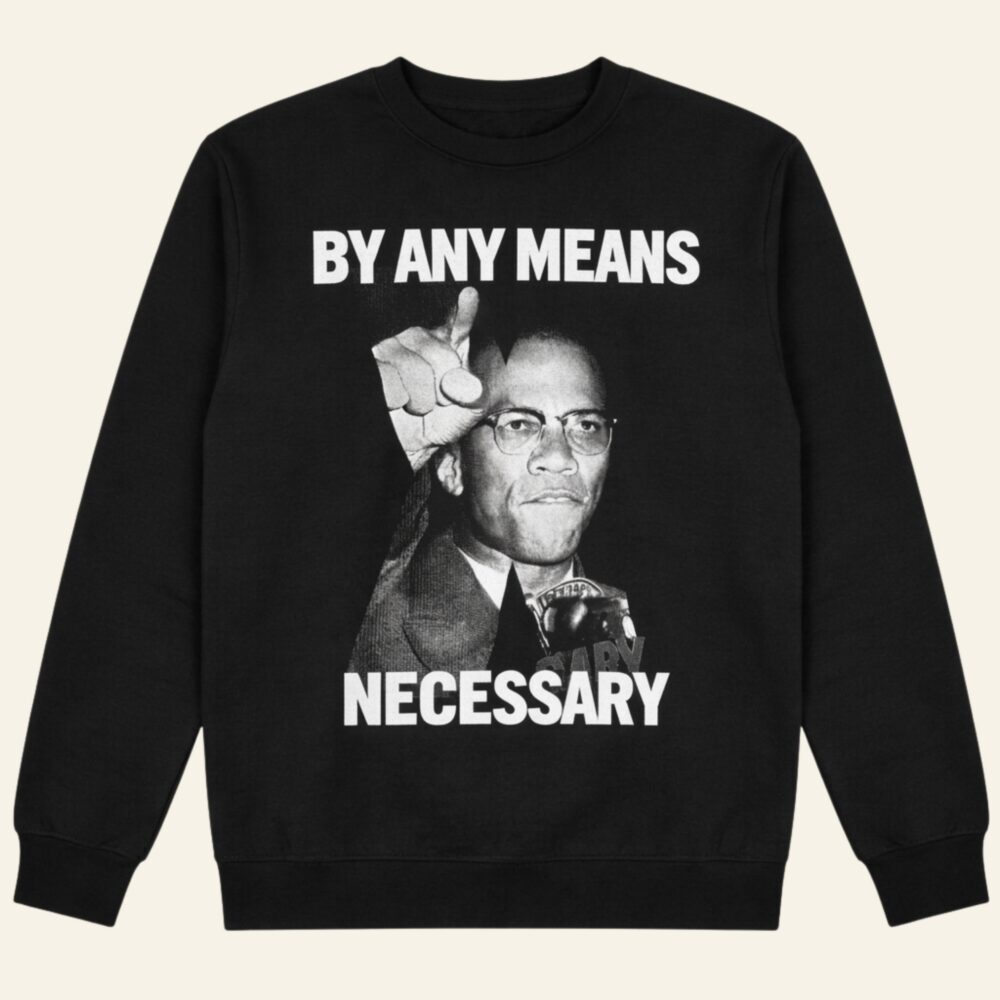 By any means necessary Malcolm X – Moletom Gola Careca Unissex